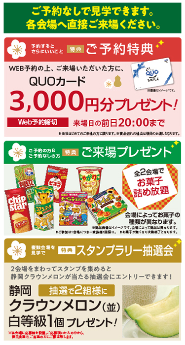 最新の見学会情報です。詳しくは、ご覧になりたい会場をクリックしてください。